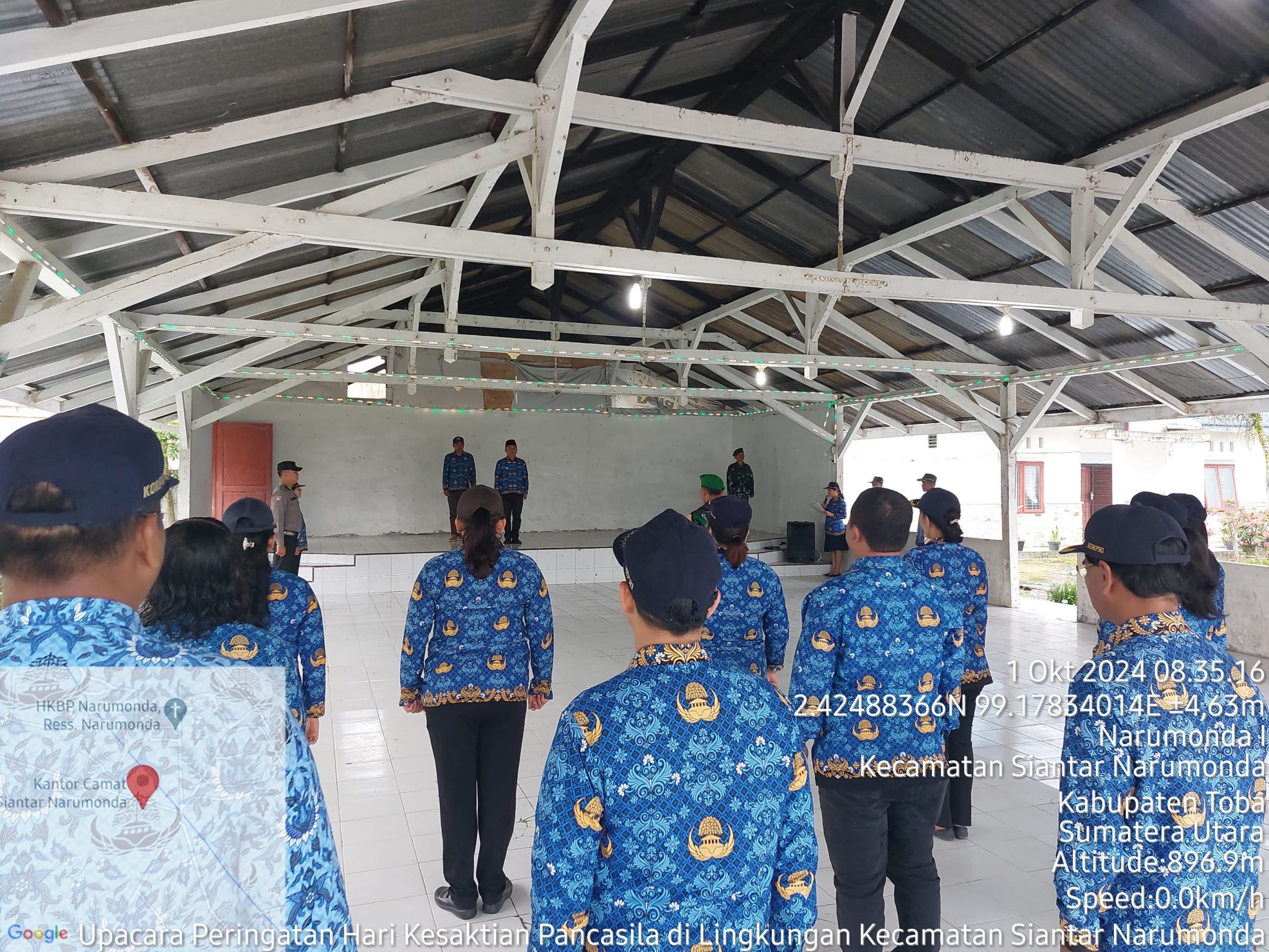 Peringatan Hari Kesaktian Pancasila di Kecamatan Siantar Narumonda 01 Oktober 2024 tetap dilaksanakan di Aula Kantor Kecamatan Siantar Narumonda walaupun cuaca hujan. Acara dihadiri oleh Forkopimca, ASN di lingkungan Pemerintahan Kecamatan Siantar Narumonda, Guru dan Kepala Sekolah dari sekolah-sekolah yang ada di Kecamatan Siantar Narumonda. Dalam Arahannya Camat Siantar Narumonda, S. Evendy Marpaung, ST mengatakan “Sebagai ASN kita harus mengedepankan Pancasila dalam kehidupan, selain itu dalam masa-masa menuju Pilkada Serentak Tahun 2024, mari kita menjunjung Netralitas ASN”